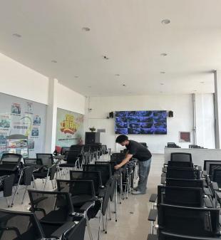 实训楼二楼,另一批同学们同样干劲十足。大家首先对桌椅进行了重新规划与摆放,根据教室的空间布局和使用需求,调整出最合理的排列方式,以便于开展日后的教学活动。随后,大家拿起扫帚、拖把等工具,对地面进行了彻底清扫和拖洗,将长期积累的灰尘、杂物一一清除。同学们不放过任何一个卫生死角,无论是墙角旮旯,还是设备底部,都被清理得干干净净。