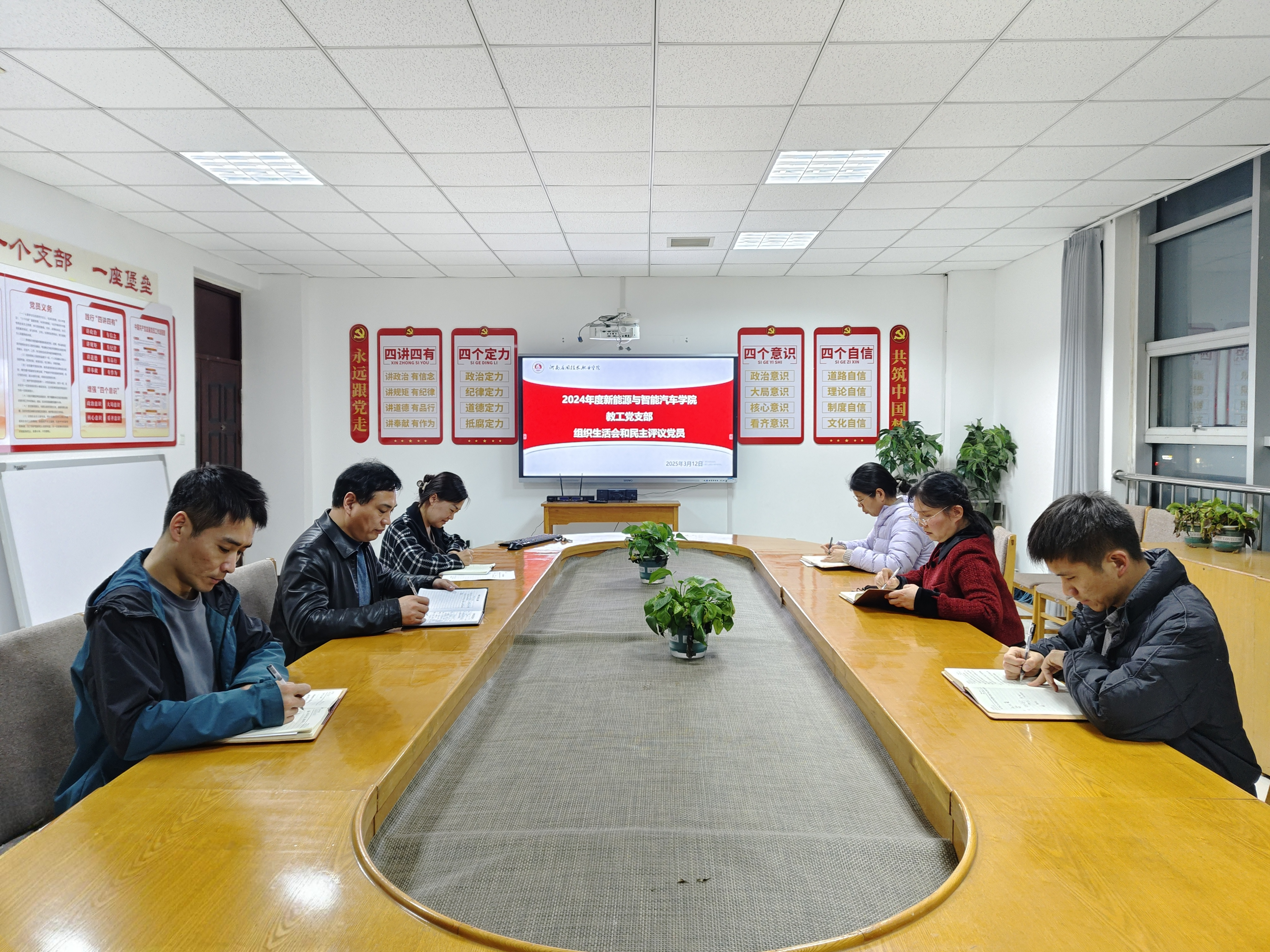 经beat365中文官方网站党总支委员会讨论决定,beat365中文官方网站教工党支部与学工党支部于3月12日召开2024年度组织生活会和民主评议党员会议。教工党支部由支部书记仵征主持,师晓记录;学工党支部由支部书记孙丽娜主持,李航记录。