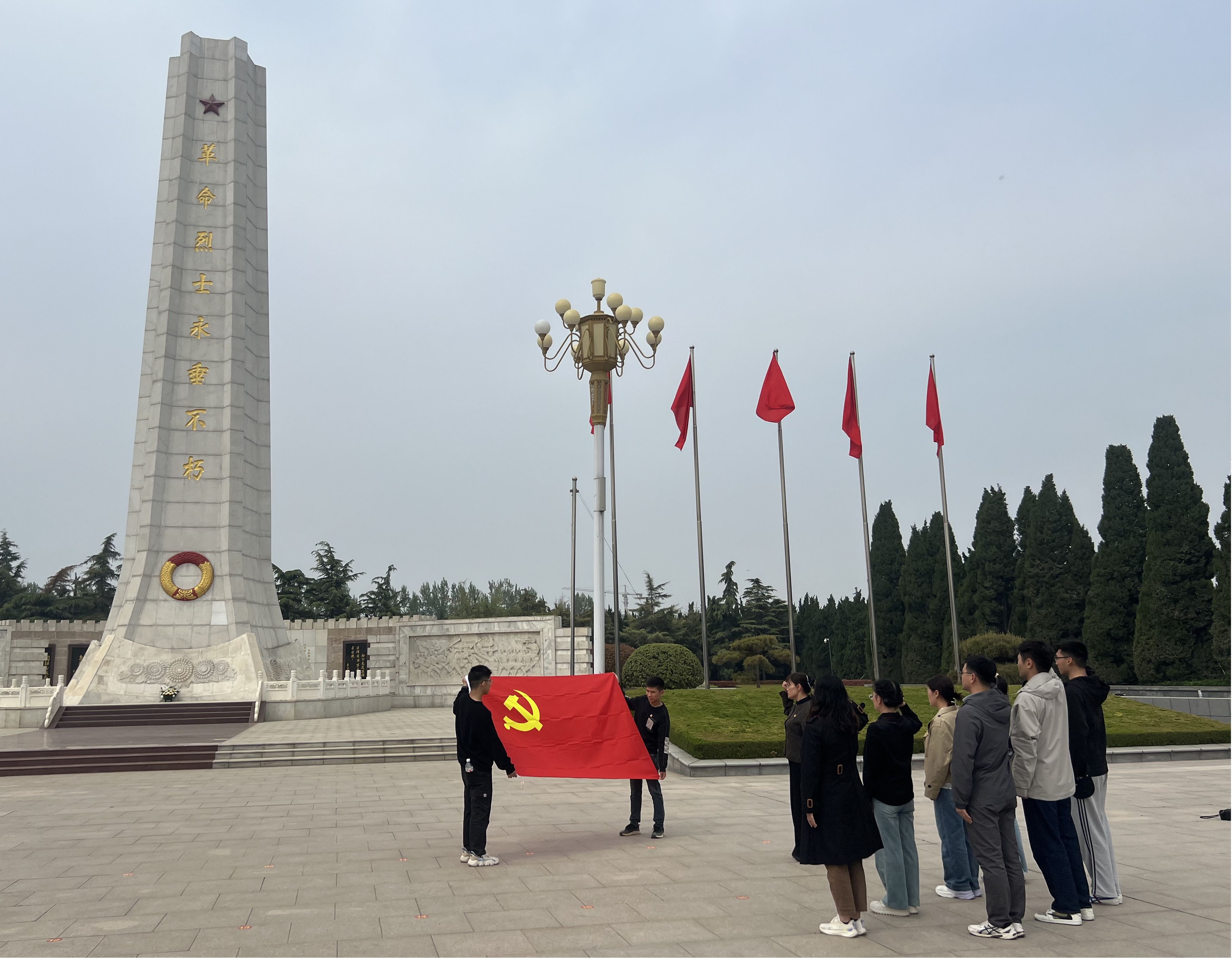 为缅怀革命先烈,传承红色基因,弘扬爱国主义精神,beat365中文官方网站全体党员及教师和入党积极分子于4月8日前往开封烈士陵园,开展了一场庄重而肃穆的缅怀活动。此次主题党日活动旨在让师生们铭记历史,汲取奋进力量,进一步坚定共产主义理想信念。