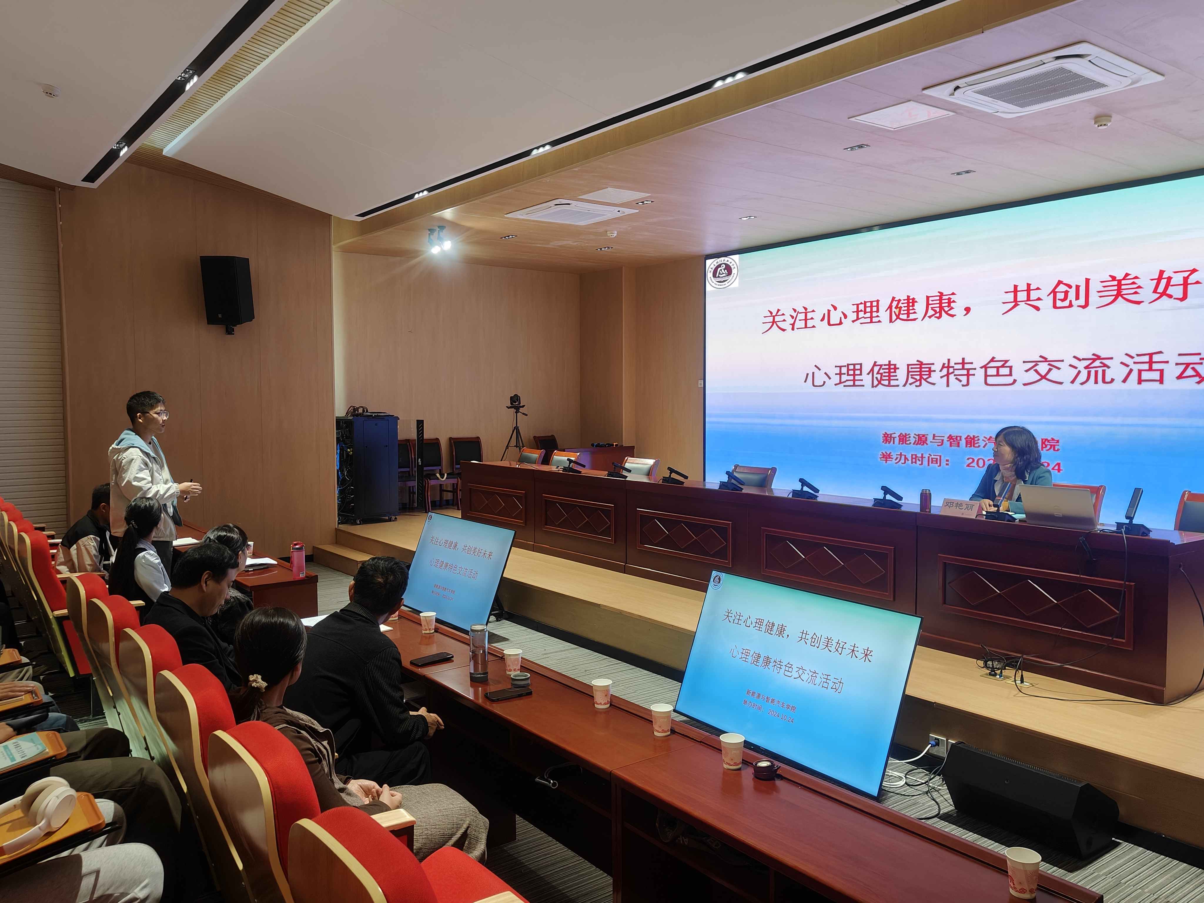 培训伊始,邓主任凭借丰富从业经验,深度剖析当下大学生心理状态。聚焦新能源汽车学院学生专业特性,点明高强度课程学习、前沿技术钻研压力,以及对新兴行业未来不确定性的担忧等,易在学生群体催生焦虑、自卑等情绪问题。结合诸多校园真实案例,以故事化形式拆解心理问题外在表现,传授从言语表达、行为细节察觉学生心理困境的“火眼金睛”之法,引得台下教师频频点头、认真笔记。互动环节,新教师分享课堂“小插曲”,众人集思广益,邓主任更给出实用沟通策略,助教师化“心理症结”于无形,搭建和谐师生关系。