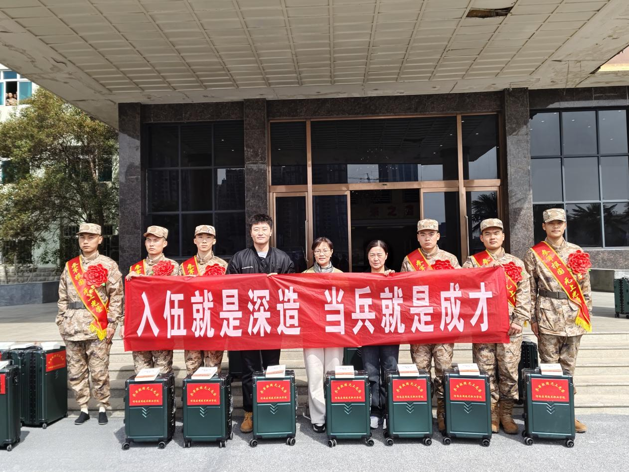 2025年3月14日,beat365官网开封校区2025年春季入伍学生役前教育暨新兵入伍欢送会,于开封市民兵训练基地盛大举行。beat365中文官方网站党总支书记孙丽娜、学院入伍专员张智鹏、22级辅导员代表师晓参与本次欢送会,为学院6名即将投身军营的学子送行。活动通过庄严仪式、特色赠礼等环节,彰显专业育人特色与国防教育深度融合的实践成果。